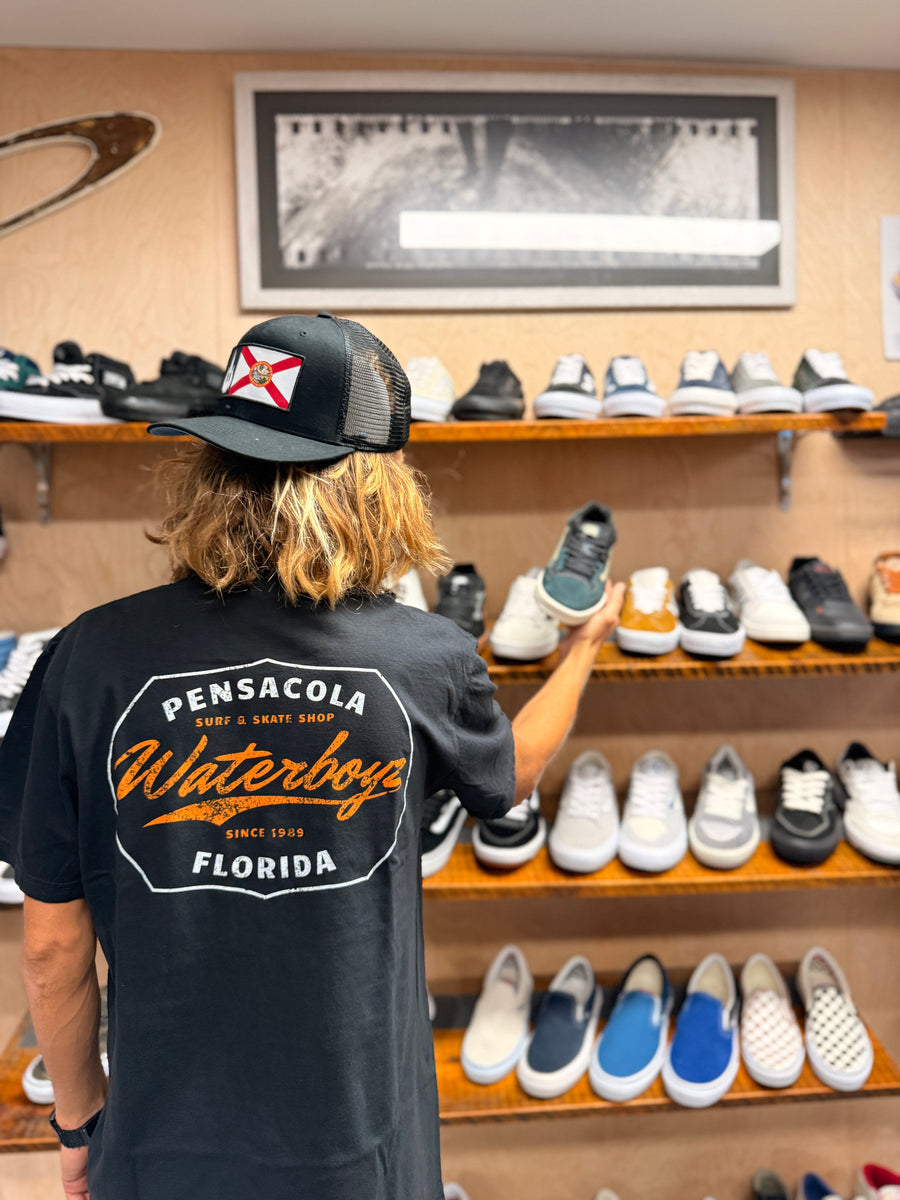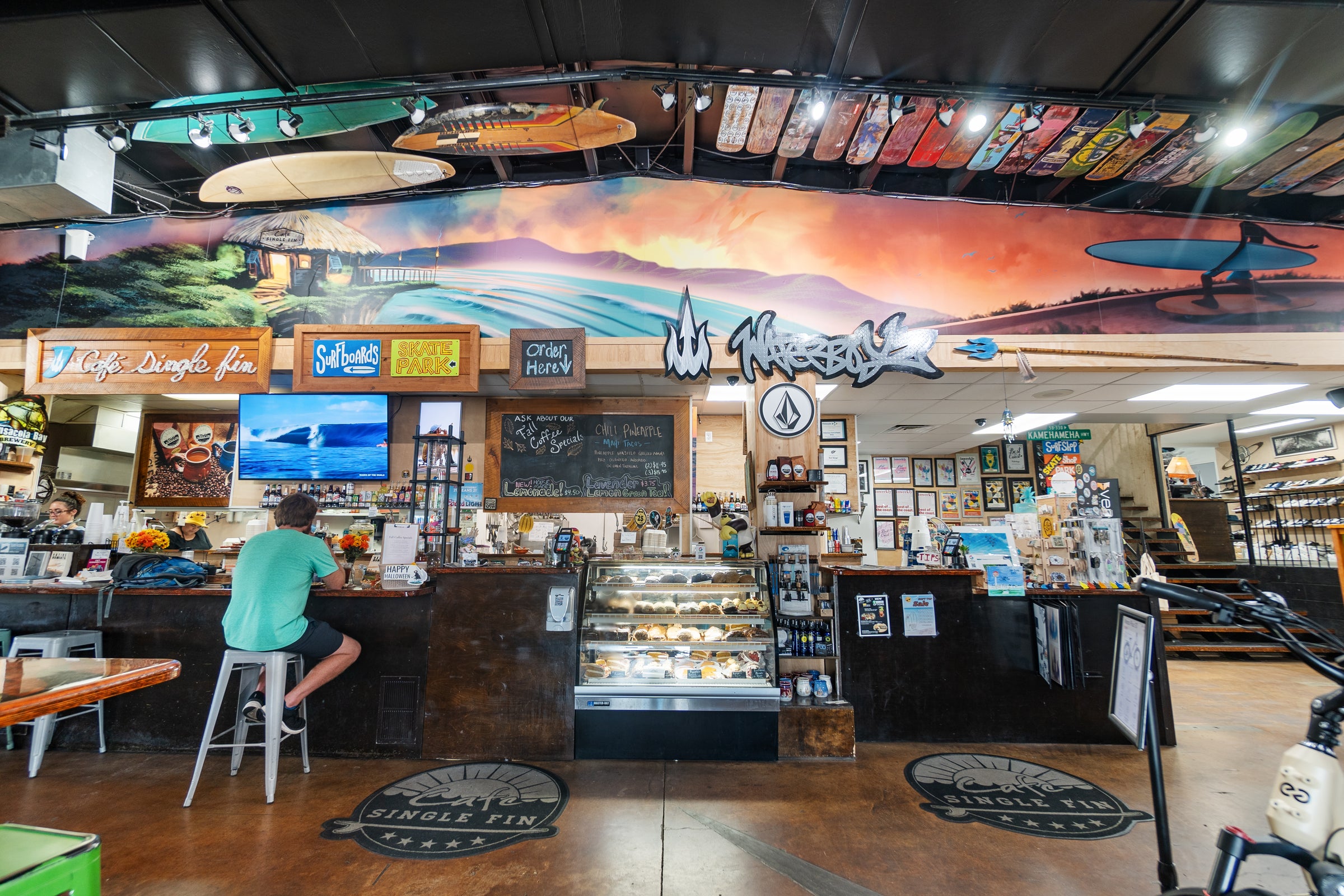 Inside the world headquarters of Waterboyz is a welcoming atmosphere. Come and hang out for a while, have some great coffee and food at the Cafe Single Fin, shop for great clothing pieces or the latest in surf and skateboard gear. While you are there check out our indoor skatepark and watch WBZ surfboards being hand crafted. Eat, Shop, Shred.