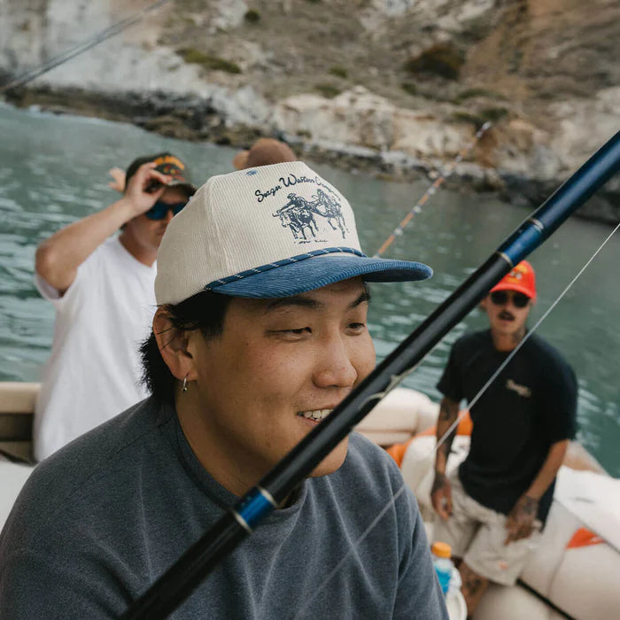 The 'Los Rios' Snapback combines a two-tone corduroy exterior, roping on the brim, and a bold screen-printed illustration for a vintage feel with modern style. High-profile fit, timeless design- this one’s ready for anything.