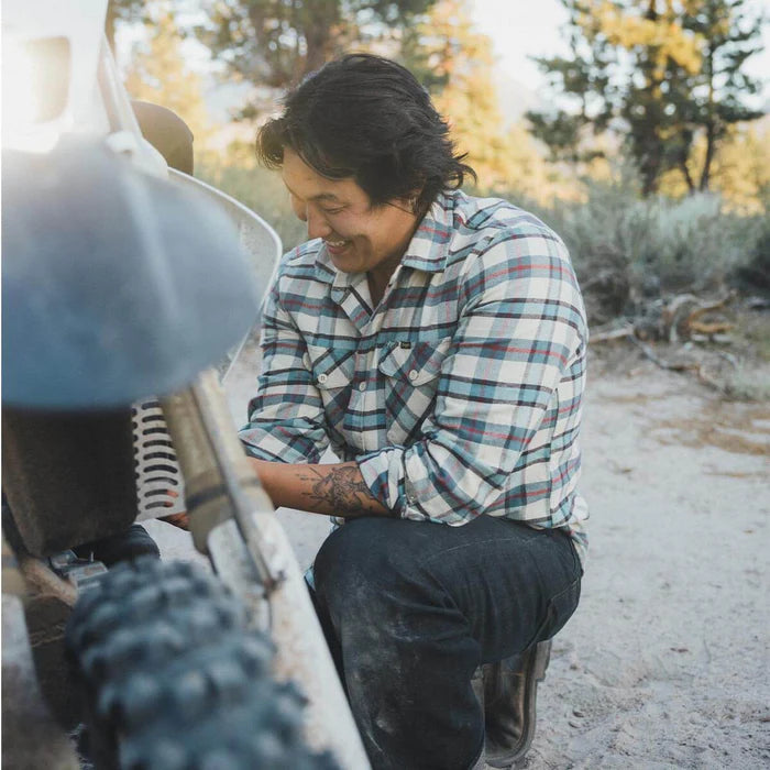 An updated take on one of our staples - the Calico Flannel. Built from 100% cotton, this yarn-dyed flannel is peached on both sides for unbeatable softness and cut with a relaxed fit that keeps comfort front and center. Finished with dual chest pockets, workwear-grade buttons, and herringbone twill backing for lasting strength. The Calico brings together everyday wearability and hardwearing construction, built to hold up season after season.