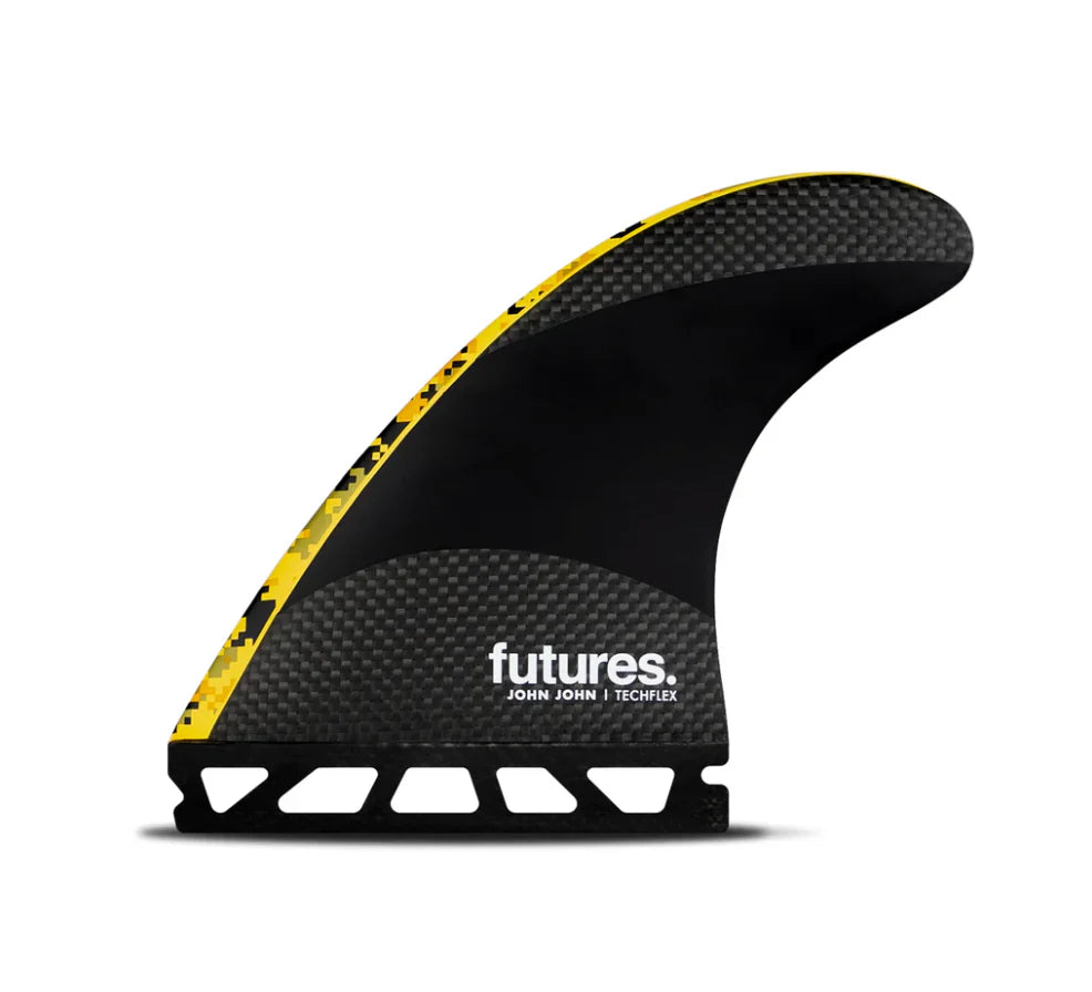 The John John Florence Techflex thruster is John's daily driver and the fin that he rode exclusively to 3 World Championships. John’s approach in both waves of consequence and high-performance competition show the versatility of the Techflex construction. Stable and predictable at high speeds, as well as springy and responsive in more playful conditions.