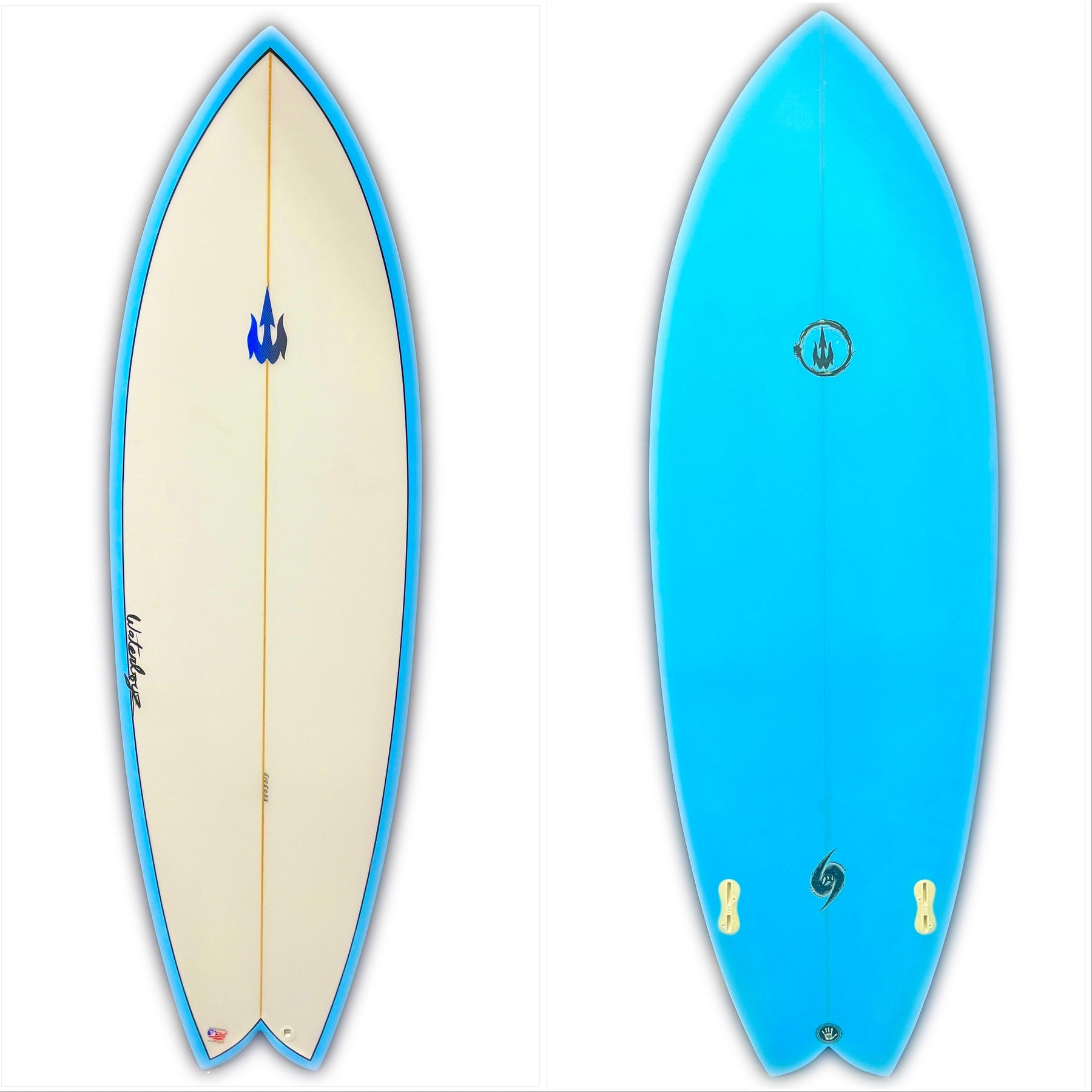 WBZ 5'10" BlueFin Twin Fish Surfboard - Blue Rails/ Hull