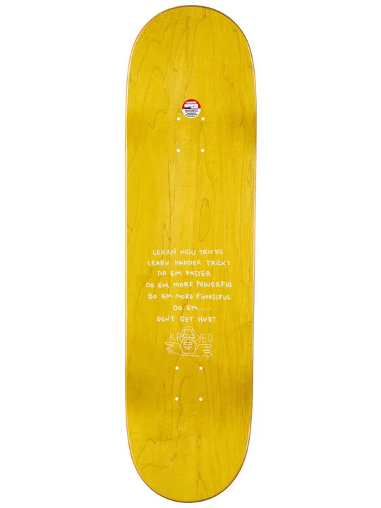 Stack some fire clips on the Krooked Wilson Fire Mask Deck 8.75 x 32.62. This pro quality skateboard deck is constructed from traditional 7-ply Maple wood with top stains that may differ from what is pictured.