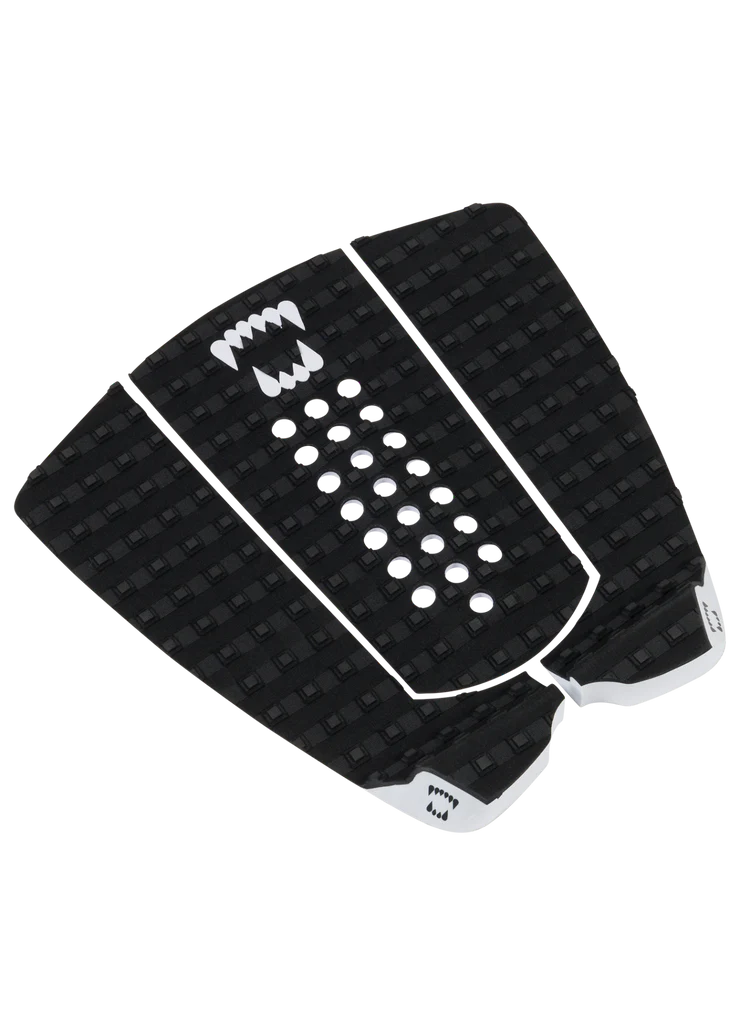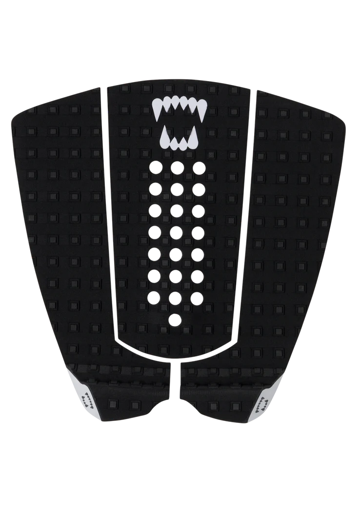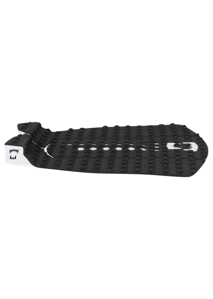 The Slayer is a 3-piece traction with a wider center arch for a more subtle curve under foot. The pulled in tail kick is designed to fit the curve of a round tail, but can also be used on narrower squash or swallow tails.